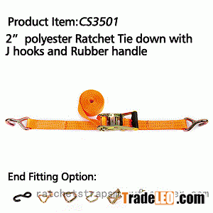 Name: CS3501 2" polyester Ratchet Tie down with J hooks and rubber handle