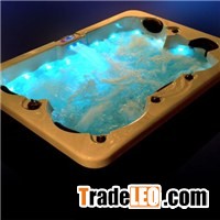 ????? PRODUCT DEscriptION ????????L511 whirlpool thermo spa has a special design for 3 or 4 adults. The big 5" multicolor LED light makes the massage romantic. The dimension of this acrylic spa tub is perfect for both indoor and outdoor.DIMENSIonSProduct dimensions (L* W * H):2140*1550*850MM? Seating Capacity:4 adults ? Lounge Seat (s):2, indoor spaSPA SHELL & ConSTRUCTIONUSA Lucite Acrylic with microban:Sterling silver ? Construction:Stainless bottom & frame ? Spa Cabinet Materia(6 colors):PS Wood-Plastic ? Bottom:ABSSTAINLESS STEEL JETS 41 PCS5" Directional Jets (pcs):1 ? 3L511 Hot sale 3 person Jacuzzi Spa
