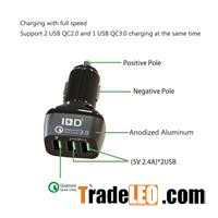 Mobile phone charger QC3.0 plus qc2.0 3 port usb mobile charger for Samsung Galaxy S6 Product showDetail:Brand Name: IBDModel Number:IBD317Use:Mobile PhoneType:ElectricPlace of Origin:Guangdong, China (Mainland)product name:super fast mobile chargerUSB port:1*QC3.0 port +2*QC2.0 portsFunction:QC3.0 +QC2.0 and QC 3.0 port compatible with HuaWei FCP quick chargeQC3.0 output:3.6-6.5V/3A,6.5-9V/2A,9-12V/1.5AQC2.0 output:(5v/2.4a 9V/2A 12V2a)*2USBpackaging:paper cover + kraft neutral box or customizedOEM/ODM services:OEM logo and package, ODM can be acceptMaterial:Best PC fireproof + Anodized AlumQC3.0 Plus Qc2.0 3port Usb Mobile Car Charger