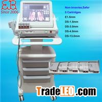 5 Cartridges Medical HIFUModel No.: EB-H2 Working Theory:HIFU beauty system uses an advanced new high-intensity focused ultrasound technology(HIFU for short). The machine will release highly concentrated focus sonic energy which can directly penetrate into the skin and deep SMAS facial skin tissue that can stimulate and renew skin's collagen and thus tighten the skin and remove wrinkles. It successfully achieves a quite good result of skin tighening and face lifting without any help of invasive surgeries. Applications of medical hifu:1) Removing wrinkles on around forehead, eyes, mouth, etc2)5 Cartridges Medical HIFU EB-H2