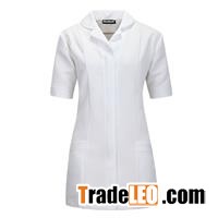 Classical design nurse top PRODUCT DEscriptION 1,Website:http://www.chinaworkwell.com,Classical design nurse top. Nurse Tunic . .2,Concealed resin zipper with one snap on the front placket. 3,Two bottom pockets4,Short sleeve design .5,100% polyester gabardine.200gsmFEATURES1,Classical design. 2,Pure white fabric. 3,Wrinkle free.PRODUCT DETAILS Model#2020,Classical design nurse topSizeXXS-3XLFabric 1100% polyester gabardine.200gsm. Or 65/35poly/cotton 160gsm,twill or poplin ..ColorAll color are welcomedLogo emb.or PrintcustomedMOQ1500pcsTest orderYou can order small quantity100%polyester Women's Classical Nurse Top