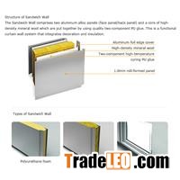 Mineral Wool Sandwich PanelsTHINKROCK Sandwich wall comprises two aluminum alloy panel(face panel/back pane) and a core of high-density mineral wool which are put together by using quality two-component PU-glue. Why we choose mineral wool sandwich panel as wall panel?With its non-combustible structural mineral wool core,Website:http://www.lightweightpanel.com, it absorbs noise well and provides excellent fire safety and thermal insulation.Installation systemAccording to the specific project, we provide unitize curtain wall system integrates door, window, panel system. ApplicationWall panel andMineral Wool Sandwich Panels