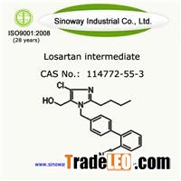 Sinoway Industrial Co.,Ltd is a famous China 4'-(2-butyl-4-chloro-5-hydroxymethyl-1h-imidazol-1-yl)-1,1'-biphenyl-2-carbonitrile manufacturer and supplier, welcome to buy GMP and EP 4'-(2-butyl-4-chloro-5-hydroxymethyl-1h-imidazol-1-yl)-1,1'-biphenyl-2-carbonitrile from us and check the price with us.Basic information of4’-(2-Butyl-4-chloro-5-hydroxymethyl-1H-imidazol-1-yl)-1,1’-biphenyl-2-carbonitrile:Name4’-(2-Butyl-4-chloro-5-hydroxymethyl-1H-imidazol-1-yl)-1,1’-biphenyl-2-carbonitrileMolecular FormulaC22H22ClN3OMolecular Weight379.88QualityStandardI.H.SPackage Size25kg/drumBrief IntroductiLosartan intermediate CAS No.: 114772-55-3