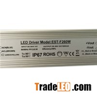 Features:1,Website:http://www.estledlight.com, Wide range of AC input voltage 85VAC~305VAC2, Active power factor correction3, Protections against: short circuit/over current/over voltae/over load/over temperature4, IP67 design for outdoor application5, Standardized module, easy to install and maintain6, 3 years warranty7, CE RoHS ApprovedElectrical SpecificationsModel NO:EST-F260WWattage (w)260WInput Voltage Range (V)85-305VACOP. Frequency (Hz./kHz)50Hz 60HzMTBF>50000 hoursOutput voltage30-36V36-42V42-48VOutput current7800mA6300mA5400mAEfficiency92%92%92%Power Fact (pf)>0.98>0.98>0.98Size240*6260W LED Driver