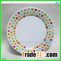 Quick DetailsDinnerware Type:Dishes & PlatesMaterial:PlasticPlastic Type:MelamineCertification:CE / EU, CIQ, FDA, LFGB, SGSFeature:Eco-FriendlyPlace of Origin:Guangdong, China (Mainland)Brand Name:TarsonModel Number:P301Size:10 inchUnit Weight:190gColor:colorfulEffect:embossed decalsDesign Feature:round shapeFunction:dinner plate for childrenTemperature Range:-30--- +120MOQ:5000pcsODM/OEM:AcceptPort:Yantina of ShenZhenPackaging & DeliveryPackaging Details:opp bag +carton box, blister card +colorful window boxDelivery Detail:Shipped in 30 days after paymentProdct Details :Product NameMelamine pCheap 100% Melamine Cake Plate With Embossed Dots