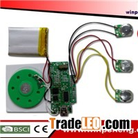 Quick DetailProduct name: Usb Sound ModuleSize: CustomizedSound length: 1-60sSpeaker: 29mm,Website:http://www.u-cards.com, 40mm metal or plastic caseBattery: AG10 /AG13x3pcsBattery life: 200 -300 timesMusic/sound file: MP3 or WAVSupply voltage: 4.5vSample time: 7daysCustom: WelcomedPacking & DeliveryPackaging: 1pcs/polybag, 400pcs/carton to protect the product.Delivery: Around 20-25 days after received your payment and sample approved.This module plugs directly into the USB port of your PC. Then use the free software to record up to 60 seconds of .wav file to this module. Comes with batteriesUsb Sound Module