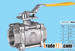3PC full bore 1000PSI stainless steel ball valveConnection mode: threaded