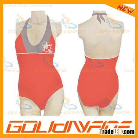 | Style No.:Glfines070039 Material: 88% nylon, 12% spandex or as per customers' requirements Ties at the neck for a personal fit Good cooperation with our local fabric and accessory suppliers, during years development, now we are able to supply different range of swim,swimwear,one piece bathing suits,one piece swim,one-piece bathing suit,womens bathing suits at attractive price. Contact Infomation
