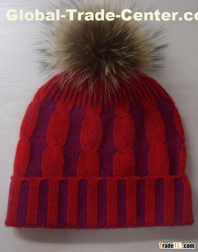 2015 Wholesale Fashion Design 100% pure cashmere/wool cable hats cap with fox/raccoon fur
