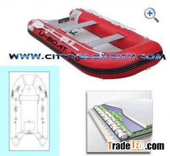 All inflatable boats use from 200cm to 420cm 0, 9mm from 430cm -700cmup use 1, 2 mm , 1100 Denier polyester fabric coated PVC tarpaulin
