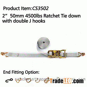 Name: CS3502 2" 50mm 4500lbs ratchet tie down with double J hooks