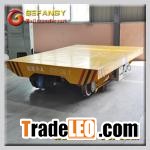 Our industry electrical transfer car is powered by the low voltage electricity from the railways, as called KPDZ electrical transfer car. The power source AC 380V is transformed into AC 36V two-phase and are respectively connected to the two rails. Then the flat cart’s wheels conduct the AC 36V on rail into the electrical appliance box at the bottom of the carts. And then the AC 36V is transformed into DC 36V and then control the DC motor through the DC control system to make the flat carts start, stop, go forward, backward and adjust the speed and so on. industry electrical transfer car can be used both on the “S” and arc-shaped railways.Industry Electrical Transfer Cart