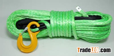 lime Colour Synthetic Basic Winch Rope Set, 12mm X 45 Meter length, Breaking strength 13500 KG with one side eye splices, Stainless steel black Tube thimble, yellow Hook, black Sleeve, and , the other Side straight end, 14mm Width Tube hole size 8m silver Mounting lug, ,1. Pre-stretched + heat-treated UHMWPE fiber for ultimate tensile strength
