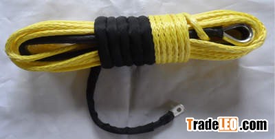 9mm x 30m abrasion resistance synthetic winch lineyellow Colour Synthetic Basic Winch Rope Set, 9mm X 30 Meter length, Breaking strength 8500 KG with one side eye splices, Stainless steel silver Thimble, black Hot shrink, , and , the other Side straight end, square silver Lug, black Sleeve,