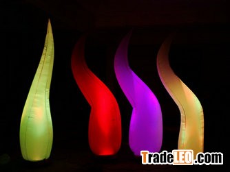 These Inflatable Cones stand 4m tall or can be custom, they make a stylish feature at larger venues. Each cone has a fan mounted in the sturdy wooden base which keeps it permanently inflated and has an LED colour changing light inside which gently illuminates from within and fades from one colour to another, or can be syncronised, also the light can be constant on colour of choice. Total power consumption for each inflatable cone is 135w.Inflatable decoration cone with led light