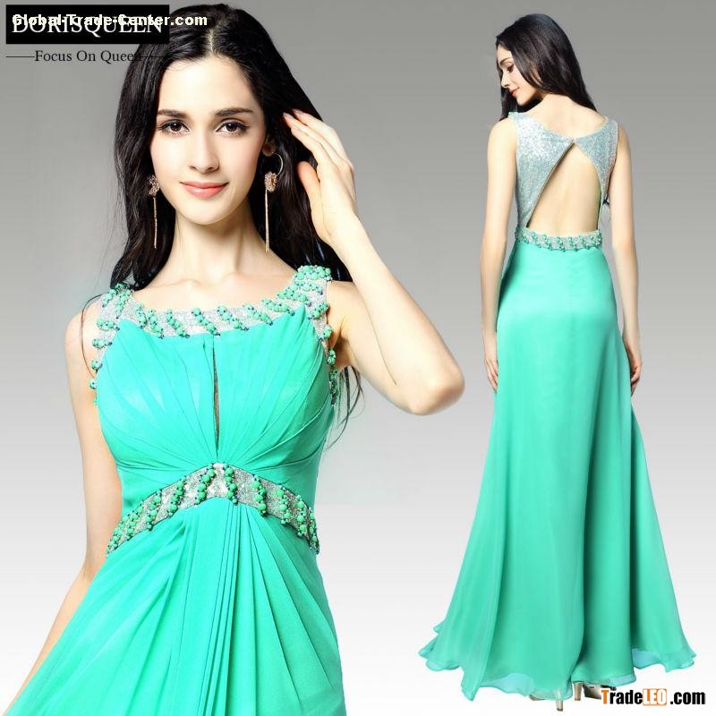 MOQ 1pc 2014 new arrival Dropship beaded floor length a line blue long prom dress 2014