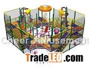 Components: A two-level design with a foam ball fountain, ball blower, several cannons, refill station, dumping basket, adventure bridge, themed panels plus more events