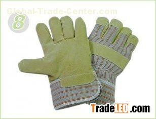 S Pasted Cuff Pig Split Leather Industrial Protective Gloves With Striped Cotton Back