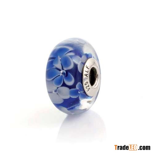 NEW 925 Sterling Silver Threaded Core Large Murano Glass Blue Blossoms Bead Fits Chamilia Trollbead Charm Bracelet