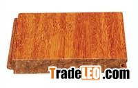 Strand woven bamboo flooring is made by compressing "strands" of the bamboo strips under intense pressure, while using a heat-sensitive low-VOC adhesive. Bamboo poles are split, shredded into individual strands, and fused under a cold press of 2,500 tons of pressure. After the curing process, the block is sliced into flooring with T+G system and coatings applied. The density of strand woven bamboo is over 1,100 kg / m3 and it is twice harder than oak. Strand woven bamboo flooring is extremely exotic and rich looking - through the "woven" process, the consistency found in the "traditional" bamboo styles is completely removed.