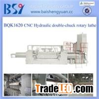 CNC high-speed hydraulic double-chuck rotary lathe This machine is designed for European customer with CNC system, used to peel the log without skin with two spindles into veneer. It can finish the rotary peeling at high-speed.ModelBQK1626/8 BQK1620/8 BQK1613/8Cutting timber diameter(mm)200 - 800170 - 80090 - 800Cutting Timber length(mm)2200-27001600-2100900-1450Veneer thickness(mm)0.35-30.35-30.35-3Diameter of chuck-axle(mm)(small)F 70 (big)F 160(small)F 70 (big)F 160small)F 70 (big)F 160Chuck-axle speed(rpm)0-4000-400 0-400Main motor power(kw)160160 160Feeding servo motor(kw)111111CNC High-speed Hydraulic Double-chuck Rotary Lathe