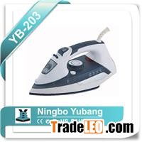 eramic steam iron1.127V,1200W / 220V,1800W2.ABS,PP,PBT body.3.Blue,Green,Purple and white color.4.300ML water tank.5.with 1 50ML water cup.6.spray steam,vertical steam,burst steam,self clean function.7.indicator light8.temperature adjustable knob9.plate type: ceramic coating.10.1.8M power cord.11.competitive price.YB-203 Electric Dry Steam Iron With Full Function Auto Shut-off