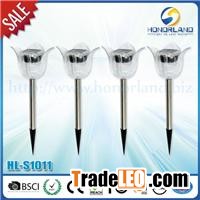 Solar Garden LightItem no.DescriptionPacking & Meas. &Cont.QtyHL-S1011Solar panel2V 40MA polycrystalline1pc/color box: 15*15*13.5cm12pcs/ctn: 46.5*31*28.5cm20'fcl/40'fcl: 7717pcs/16004pcsBattery1pc Ni-MH AA 600mahLight Source1pc supper brightness LEDSizeF=15cm,H=41.5cmMaterialStainless steelMOQLEDwhite/color3000PCSCertificationCE/Rohs/ReachPrice TermPaymentT/T or L/CFOB NINGBO/SHANGHAIREACH/BSCI Stainless Solar Light