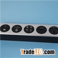 High Class Aluminum Alloy Multimedia Wall Mounted Socket Outlet Plate for HotelThe wall socket is made of aluminum alloy material. It is mainly used in advance office, multimedia classroom, training room, lecture room, hotel and ect. With its beautiful appearance and, multi-function, it is popular and widely used in the decoration of the advance system.ParameterAluminum wall socketItem nameJN-100rated voltage110/220VmaterialAluminum alloyModulesEU/US/German/UK power,Audio, network,USB, HDMI,VGA, RCA,and ect.Customized-ableColorBlack/Silver, customized-ableDimension80/160/180/215/258* 80* 5mm,High Class Aluminum Alloy Multimedia Wall Mounted Socket Outlet Plate For Hotel