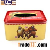 Big Rectangular Tissue Tin Box In market, tissue is often held on plastic box. However, some tissue manufacturers also use tin can to pack their products. Tin Men United Tin Can Manufactory Co.,Ltd of course designs one for a tissue manufacturers. The size of 180x130x90mmH makes a suitable space for inner tissue. The tissue can be fetched from the oval hold in lid. This box is made up of three pieces of tinplate(lid, body and bottom). Lid is inner plug. Bottom is clinched, which can seal the body tightly. The cmyk printing reflects its usage directly. Glossy varnish outside makes the whole bBig Rectangular Tissue Tin Box
