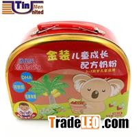 Moon Shaped Lunch Tin BoxIn USA, there is a good sales luch tin box. It can be used to pack many kinds of goods such as cake, cosmetics. On the requirements of an USA client, Tin Men United Tin Can Manufactory Co.,Ltd makes this lunch tin box.This tin box is made up of 3 tinplates(lid, body and bottom). The body is rolled into a moon shape. The clinched bottom can seal the box tightly. One side of lid is sealed on body by hinges. The other side can be closed and opened by lock. On body, there is a handle. People can take it by handles. The size of 197X149X90MMH creates a big inner room.The cmyMoon Shaped Lunch Tin Box