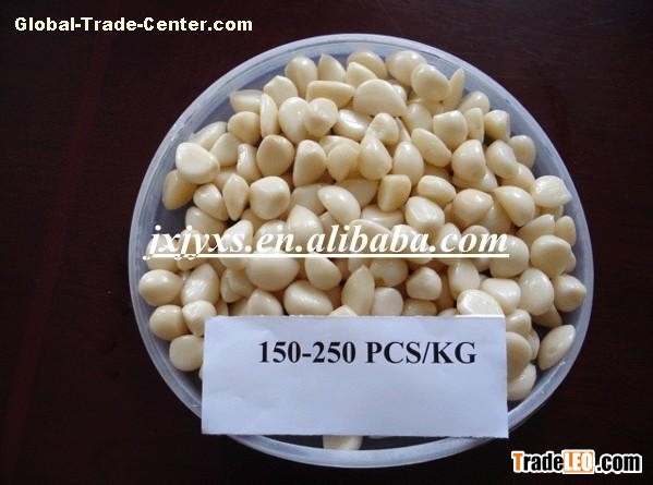 | The peeled garlic specifications are: L: 240 cloves/kg Package in 10 kg net cartons with internal plastic bags 0.5lbs bottle (jar) or nitrogen bag or vacuum bag 3lbs bottle (jar) or nitrogen bag or vacuum bag Contact Infomation