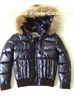 This jacket is made of soft nylon down proved, with soft shining effect; padded with 80% white duck down, on collar with rabbit fur, well keep warm, when take it.