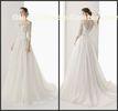 Half Lace Sleeve Bateau Chiffon Womens Wedding Dresses With Hand Made Flower Sash Feather Sweep Train Bridal Gowns