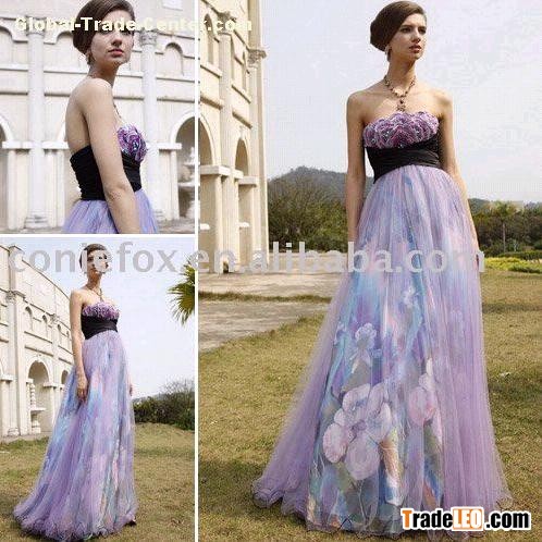 1.embroidered strapless purple party dresses/empire princess party dresses / floral lining party dresses/charming party dresses