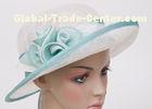6cm Short Brim White Womens Church Hats , Sinamay Sun Hats For Party With Flower