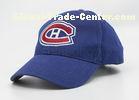Blue Flat Embroidered Cotton baseball Caps With Curved Brim , Velcro Strips