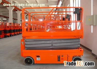 hydraulic scissor lift table is a kind of multifunctional hoisting equipment. The lifting height ranges from 1 meter to 20 meters. The platform dimension can be customized according to different needs. hydraulic scissor lift table is made of high strength alloy materials, forming a strong structure with very small deflection and swing even in high lifting height. With storage battery for power supply, it doesn’t need external power source, thus achieving a flexible application for anywhere needed. Controlled with a wired pressing button, even only one staff is able to operate to move forward, backward, steer, hoist up and lower down no mater standing on the platform or ground.