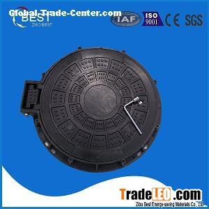 Round manhole cover with hinge