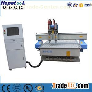 Jinan Hopetool CNC Equipment Co.,Ltd is one of the leading China two heads pneumatic atc change cnc router 1325 manufacturers and suppliers,Website:http://www.htcnclasers.com, welcome to check two heads pneumatic change cnc router 1325 price with us. Two heads pneumatic ATC change CNC router 1325 Main parts Characteristic 1.Two spindles can use two different tools for three different processing at the same time, which is similar with an economical auto-tool changer cnc machine center with two tools. 2.the vacuum pump holds tightly the carving materials which makes operating more reliable an convenient. 3.leading rack rotation with high speed and strength.air speed can be 50m/min,when working in wave board also can be 25m/min. 4.our software is compatible with type3/artcam/castmate/weitai and so on . 5.advanced USB connection with DSP operating system,fast