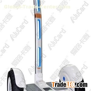 WHOLESALE ALUCARD 15 INCH TWO WHEEL BALANCE SCOOTER WITH HANDLEModel No.: CS-T201Color: White1.DescriptionWith the development of times and technology, vehicles are very normal to all of us now and specifically, the electricity-motorized vehicles are not luxuries any more, we also have more and more choices to choose from, while the two-wheel electric balance scooter with handle, which is a popular environmental outcome for modern people to entertain and ride, is just one of them! ALUCARD two-wheel balance scooter with handle uses the best raw materials like main board, gyro, motors, Samsung Battery and smart safety-protected technology to ensure its safety and free people’s worries of unexpected burning or explosion. All certificates like CE, RoHS, FCC, UL and most importantly, the patent are available for exporting. SpecificationsSpecificationsParametersDetailsProduct nameAlucard Big Wheel Self Balance Scooter /Bluetooth Hoverboard With HandleModel numberCS-T201Motion of the Control ShaftHorizontalWeight26kgStandard AccessoryMax.Speedabout 18km/hSpeeding alert activates at 12km/hMax.Range15-35kmvary with rider's weight,road condition and temperatureMax.Climbing Angleabout 15°Rider's weighing 60kg get up to 18°Working Temperature-10℃-40℃Best at 10℃-30℃Max.Load120kgCharge VoltageAC220V 50-60HzOptional: 110V/110V-240VCharge Time4-6 hoursSizeLength:60cm, Width:39cm, Height:130cmTire Size15 inchesPlatform Height22.5cmChassis Height10cm2.Product pictures3.Frequently Asked QuestionStep-by-step guide to using the balancing boardStep 1: Gently press the on/off button to power the Balancing Board up. Step 2: Put your feet on the board and hold the handle to make the Electric Balance Hover Board to sense your gravity.Step3: once you are standing stably on the board, push the holder forward/backward/right/left to direct which way the Electric scooter moves.Step 4: Get off the balancing board, and step off to the rear of the balancing board with one foot first, and the step off with the other. Little skills to handle the Self Balance Scooter·Just relax for you first riding. Maybe the Board will shake a little because of your tension when you stand on the pedal. That’s OK, you will find the balance soon.·Ride this E-scooter slowly when you learn to handle and do not make your body lean too much.·When you are proficient enough to ride you may try to drift.See image:4. Safe usage guidelinesThis section gives you information and warnings about using the balancing board. so you can stay completely safe while having fun. Just pay particular attention to these warnings and bear them in mind for your safe and enjoyable experience.Warning! . When learning how to ride your balancing board, make sure you have wearing protective equipment, such as a helmet, knee pads, elbow pads, etc. . The two wheel scooter is designed to carry one person only. . Replacing the Electric Scooter’s motor with a third-party alternative is not allowed. . Children who weight less than 25KG cannot use this product, and children who use scooter must be supervised by an adult all the time. . Using the balance vehicle should obey the local traffic rules. Be sure to respect nearby pedestrians. . Keep your feet on the pedal while riding the self balance scooter.. Wear sensible sports clothes when using this product, as this will help you to react quicker in emergencies. . Riding the balancing board at a speed that is safe for you and the people around you, and this will make it easier for you to stop. . Keep enough distance between your boards to avoid crashes If you are ridding with someone else on another balance scooter. . Do not ride your smart electric vehicle in dark or poorly-lit areas. . Forbid using this product to go over obstacles, ice, or snow. . Read the instruction manual carefully before you use your balancing board. 5.Brief introduction for C-STARC-STAR INDUSTRIAL LIMITED was established in 2000. With great capability for designing and production, modernized production lines, injection molding machine and advanced other related equipment, C-STAR is able to accept and manufacture OEM and ODM orders for various kinds of two-wheel balance scooter, hand-hold balance scooter, somatosensory vehicles, electric skateboard and the like. Our products are following the trend of this industry, and under updating to meet the needs of the market and consumers. Good quality and reputation have brought C-STAR many customers from the USA, Southeast Asia, the Middle East, Europe, etc, making international connection take place! C-STAR set up to design and produce the balance scooter in 2015 under the brand ALUCARD, which immediately became a very hot-selling sport product once it’s launched!