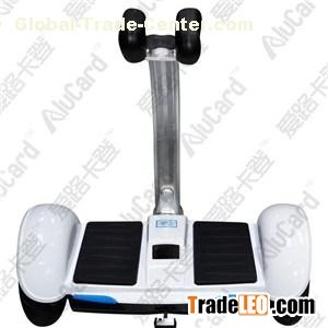 WHOLESALE ALUCARD TWO-WHEEL BALANCE SCOOTERModel No.: CS-T202Color: White1.Description●The cool device for the young●Riding and remote control,Website:http://www.ialucard.com, two way to play●Easy to learn and convenient to carry●Own complete quality certificate and many safe technologies●Long distance range for 20km ALUCARD two-wheel balance scooter uses the best raw materials like main board, gyro, motors, Samsung Battery and smart safety-protected technology to ensure its safety and free people’s worries of unexpected burning or explosion. All certificates like CE, RoHS, FCC, UL and most importantly, the patent are available for exporting. Parameters for Alucard electric balance scooterModel numberCS-T202Net weight13.5kgMinimum load25kgMaximum load120kgMaximum speed15km/hMaximum range20kmRadius of turning circle0mBatteryRechargeable lithium batteryCharging requirements100-240V 50 or 60 HzBattery weight1.5kgLength,width52cm*24.5cmHandle height140cmRide height14.4cmTire typeSolid tireBattery capacity36V 5.8Ah2.Product pictures3.Step-by-step guide to using the balancing boardstepsStep 1: Press the on/off button to power the Balancing Hover Board up. Step 2: Put your feet on the board and clamp the holder with your legs.Step 3: once you are ready to go, use your legs to control the moving direction of Electric Balancing scooter ,but make sure your balance. Step 4: Step off to the rear of the balancing board with one foot first, and the step off with the other. NotesNote 1: when you push backward, it will sound out a warning to remind you to be careful in case of crashing some obstacles. Note 2: Do not make and abrupt turns while moving at high speeds, as this could be dangerous. Note3:Do not turn the balancing board while traversing an incline to avoid causing the scooter to lose balance. Note4:This e-scooter can move as your intention for its clever sensor to analyze you legs action. So you just need to control the smart electric vehicle with your legs. 4. Safe usage guidelinesThis section gives you information and warnings about using the balancing board, so you can stay completely safe while having fun. So please read through these user guidelines firstly. Pay particular attention to the user warnings, as you will need to mind these when riding your balancing scooter if you want to have a safe and enjoyable experience. Warning! . You are liable to lose balance, crash in to objects or fall off your balancing board and hurt yourself at any time! To avoid this, make sure you have thoroughly read the user guide prior to use. .Before using your self-balancing scooter, make sure it is functioning correctly and that you are familiar with how to use all the accessories. . When learning how to ride your balancing board, make sure you have wearing protective equipment, such as a helmet, knee pads, elbow pads, etc. . The scooter cannot be used to carry more than one person. . Can’t replace its motor with a third-party alternative. . Children who weight less than 25KG cannot use this product, and children who use electric self balance hover board must be supervised by an adult all the times. . People with heart disease, high blood pressure are not suggested to use this product. Pregnant women and people with disabilities should also refrain from using this product. . Using the balance scooter should be subject to local traffic regulations. Be sure to respect nearby pedestrians. . Make your both feet flat on the foot pads while riding the self balance scooter. Riding the electric car at a safe speed for you and the people around you, and this will make it easier for you to stop. . Keep enough distance between your boards to avoid crashes If you are ridding with someone else on another balance scooter. . Do not allow yourself to be distracted while riding your balancing board, by taking telephone calls, listening to music, or simply drifting off into a daydream! . You must not slide on wet surfaces, reverse for long distances, ride at high speeds, or turn while moving fast. . Should not use this product to go over obstacles, ice, or snow. . Read the instruction manual carefully before you use your balancing board. 5.Brief introduction for C-STARC-STAR INDUSTRIAL LIMITED was established in 2000. With great capability for designing and production, modernized production lines, injection molding machine and advanced other related equipment, C-STAR is able to accept and manufacture OEM and ODM orders for various kinds of two-wheel balance scooter, hand-hold balance scooter, somatosensory vehicles, electric skateboard and the like. Our products are following the trend of this industry, and under updating to meet the needs of the market and consumers. Good quality and reputation have brought C-STAR many customers from the USA, Southeast Asia, the Middle East, Europe, etc, making international connection take place! C-STAR set up to design and produce the balance scooter in 2015 under the brand ALUCARD, which immediately became a very hot-selling sport product once it’s launched!