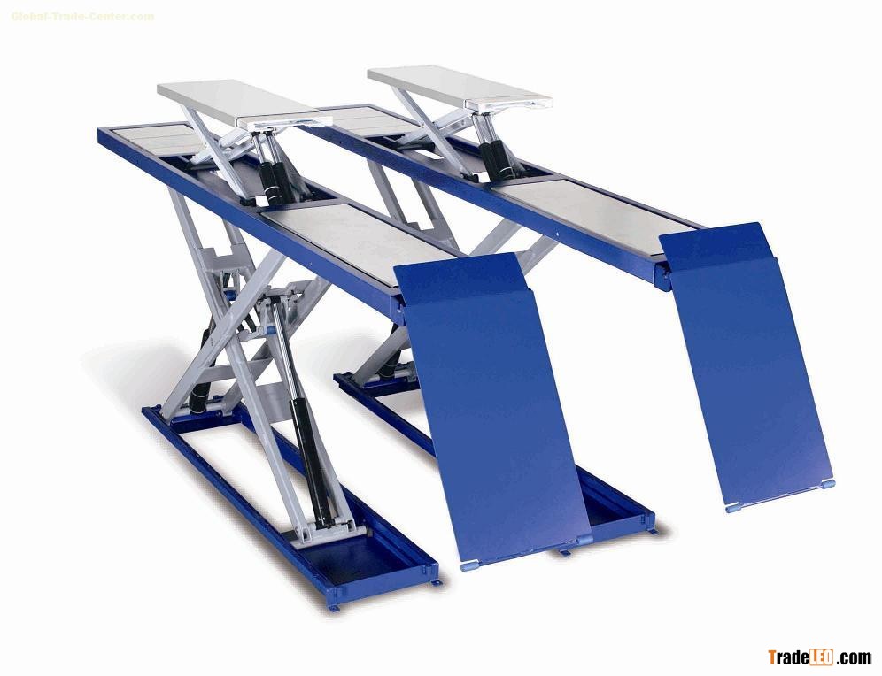 Lifts run on scissors for high-precision wheel alignment. The synchronization is guaranteed by a master/slave hydraulic circuit, which has many advantages: