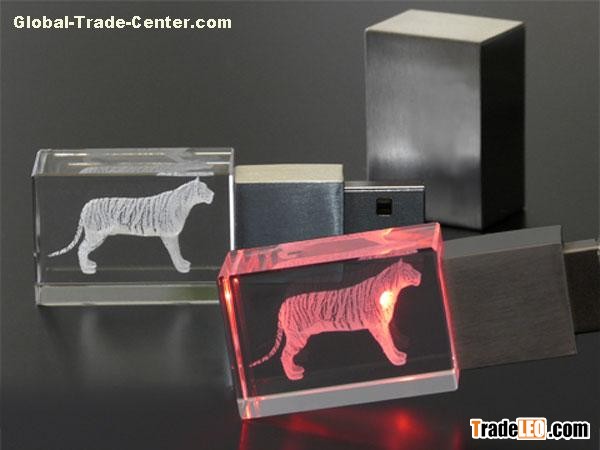 2014 most popular cystal LED usb flash drive engraved logo inside red green blue light