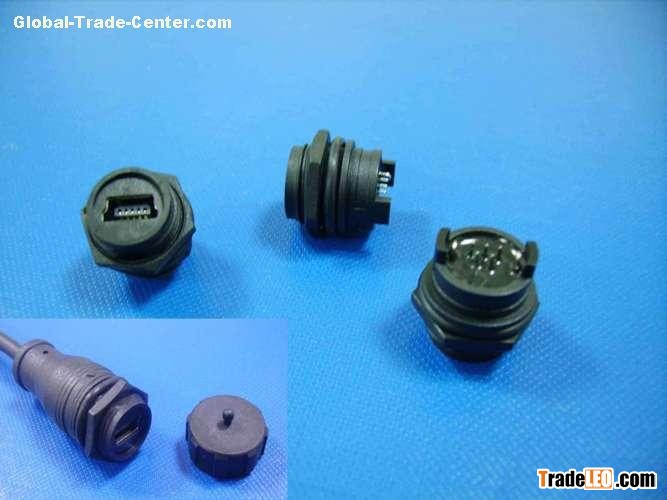 MINI USB 5 PIN FEMALE WATERPROOF CONNECTOR, MOLDING TYPE.