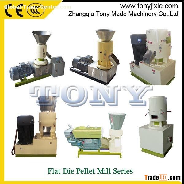 Our flat die pellet mill machine is a newly developed energy saving equipment. The finished products are smooth in surface and shapely in posture. Its hardness is closely to European standard. Since it not only can process the feedstuffs for animals, such as feed for fish, chicken, pig etc, but the pellet machine also can process the waste biomass material to wood pellet. The final wood pellets can be burned as green fuel in pellet stove or boiler.
