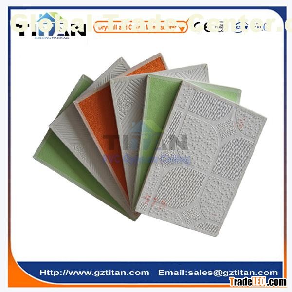 Fire proof, water proof and corrosion-resistant decorative ceiling board. It's made of high quality paper- faced gypsum board with a layer of pvc on surface and aluminum foil on its back. (Gypsum PVC and aluminum foil are all 100% environmental friendly materials with character of water proof and fire proof).