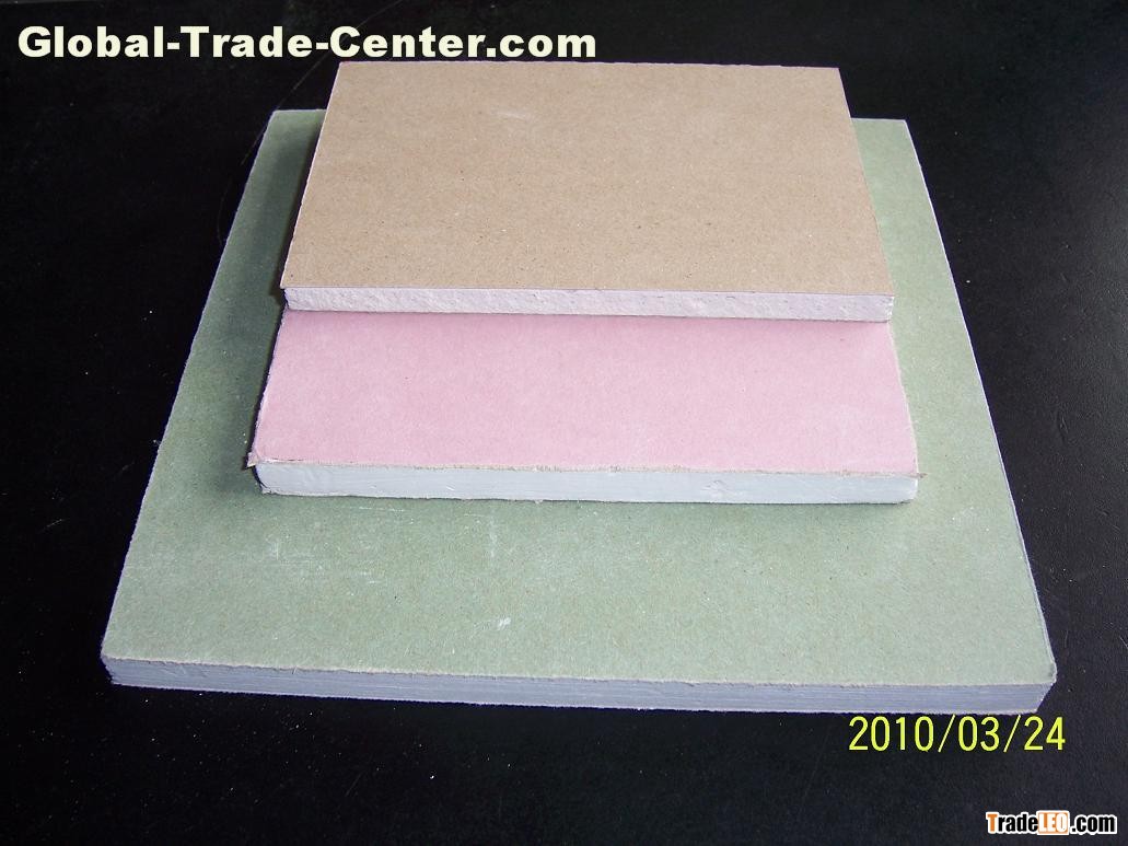 common gypsum board,fireproof gypsum board(red),moistureproof and waterproof gypsum board(green)