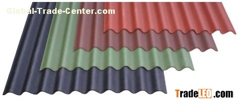 A tough lightweight corrugated roofing material manufactured from bitumen saturated organic fibres available in four aesthetically pleasing colours: black, red, green and brown.