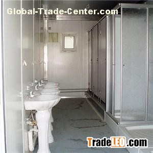 Description of prefabricated container bathroomsThe prefabricated shipping container homes can be used for prefabricated container bathrooms and container toiletMain features of prefabricated shipping container homes1.Fast installation, ready-to-useprefab container house can be installed in 1-2 hour. It is out-of-the-box and ready-to-use solution. Modules and components are connected by joints; anyone can install it easily with our product instruction. We also provide further and detailed technical and on-site installation support for any problem you may encounter.2.Comfortable and safe - build your nice and sweet homeprefab container house is strong and durable with excellent property of anti- heat, wind, vibration, humidity, water; can even deal with M8 earthquake and hurricane easily. With additional support of solar photoelectric product, solar water heater and household appliances, you could make your prefab container house to be a warm and cozy home.3.Economical and low-cost - average cost per day is less than 1$prefab container house can be used more than 20 years, you average cost per day is less than 1$.4.Movable, reusable, flexible - you can live anywhere you likeMoving around is easy without touching any of your furniture, a truck or a forklift can do the entire job.Materials of prefabricated container bathroomsname 30ft Prefabricated container bathroomslength 9000mmWidth 2438mmheight 2791mmSteel frame Material:Q345 steel:thickness 3-4mm Floor support:3mm thickness steel tube Surface working:sand blasting,epoxy basic painting 55mm, Final vinyl acrylic painting 55mm thick Forklift opening:size 100*250,distance is 1200mmRoof Outside steel:1.2mm steel sheet kneel:2mm thickness steel purlin Insulation:80mm thickness fiber glass Ceiling:8mm thickness OSB board pvc ceilingFloor Floor bottom board:0.4mm thickness steel sheet Keel:2mm thickness steel purlin Insulation layer:100mm thickness fiber glass Plywood 1.5mm floor leatherWall Wall panel:75mm thickness sandwich panel (alternative insulation material:PU,EPS,rock wool)Electricity system Double tube fluorescent light(usually 2pcs) Distribution board: 1pcs Socket:16A(usually 2pcs) Electric wire:three color wiring voltage:110-220v,50-60hzTechnical parameter House load:bearing max load capacity 2.0kn/m2(200kg/m2) Wind load:210km/h Compression capability loading:150kg/m2Plan of 30ft prefabricated container bathInstallation of prefabricated container bathroomsPacking