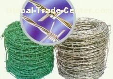 | We produces Galvanized Barbed Iron Wire in IOWA type, with 2 strands, 4 points. Barbs' distance 3-6 inches ( Tolerance +- 1/2" ). Galvanized Barbed Iron Wire offered by us is suitable for industry, agriculture, animal husbandry, dwelling house, plantation or fencing. Packing: in coils. | | | | | | Traditional Twisted | | | | | Double Twisted | Single Twisted | | Gauge of Strand and Barb in B.W.G. | Approximate Length per Kilo in Meter | | Barbs Spacing 3" | Barbs Spacing 4" | Barbs Spacing 5" | Barbs Spacing 6" | | 12x12 | 6.0617 | 6.7590 | 7.2700 | 7.6376 | | 12x14 | 7.3335 | 7.9051 | 8.3015 | 8.5741 | | 12-1/2x12-1/2 | 6.9223 | 7.7190 | 8.3022 | 8.7221 | | 12-1/2x14 | 8.1096 | 8.814 | 9.2242 | 9.5620 | | 13x13 | 7.9808 | 8.899 | 9.5721 | 10.0553 | | 13x14 | 8.8448 | 9.6899 | 10.2923 | 10.7146 | | 13-1/2x14 | 9.6079 | 10.6134 | 11.4705 | 11.8553 | | 14x14 | 10.4569 | 11.6590 | 12.5423 | 13.1752 | | 14-1/2x14-1/2 | 11.9875 | 13.3671 | 14.3781 | 15.1034 | | 15x15 | 13.8927 | 15.4942 | 16.6666 | 17.5070 | | 15-1/2x15-1/2 | 15.3491 | 17.1144 | 18.4060 | 19.3386 | | We offers barbed wire with different treatment, like PE or PVC coated. Technical Info of PVC Coated Barbed Iron Wire: Core of PVC Coated Barbed Iron Wire can be galvanized iron wire or black annealed iron wire. A variety of colors like green, blue, yellow, orange, gray, is available with PVC Coated Barbed Iron Wire produced by us. Tensile strength of Standard PVC Coated Barbed Iron Wire is 30-45 kgs./sq.mm. Packing: In coil of 25 kilos or 50 kilos net, lined with P.V.C strips, then wrapped with P.V.C or hessian cloth. | | | | |
